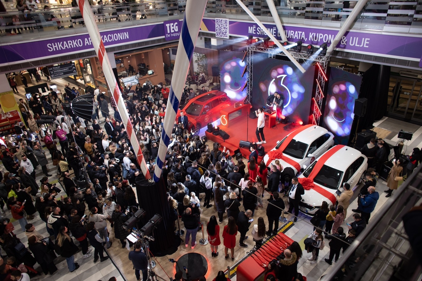 Një paradë e gjatë dhe e bukur fituesish u pasua nga tingujt e bukur të kantautorit Alban Skënderaj dhe menjëherë më pas, erdhi momenti kulminant: ai i ndarjes së tre çmimeve kryesore. Tre abonentë besnikë Vodafone u larguan prej festës, jo me makinën e tyre, por me makinën e fituar në llotari. Kështu, dy prej tyre morën çelësat e një Skoda Scala, ndërsa Erga Tafaj rrëmbeu çmimin e madh, pra makinën Skoda Kodiaq.