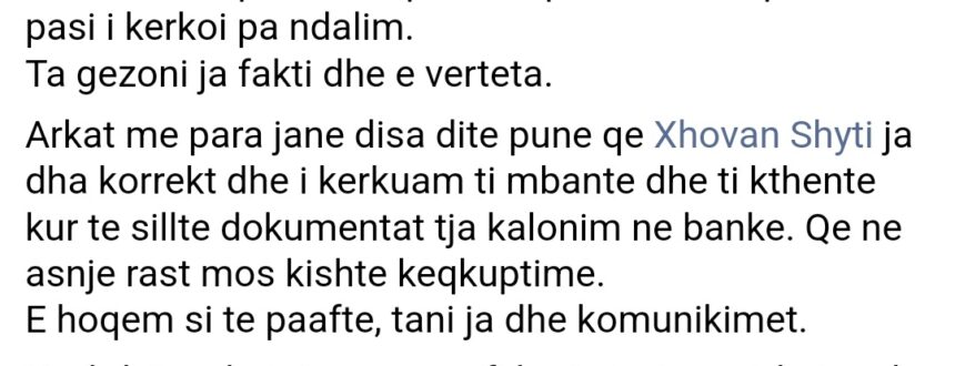 Fundo thotë në reagimin e tij se paratë Xhovani do t’ia jepte një punonjësi, i cili sipas t’i do t’i kthente sërish. Pasi t’i kthente, kompania do t’ia kalonte në bankë.