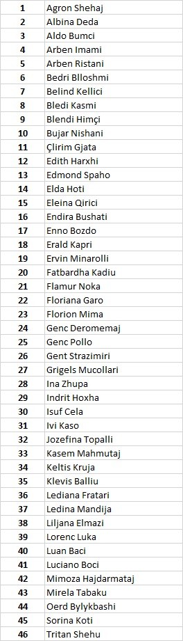 Në variantin e parë lista e publikuar në media ishte me 46 kandidatë, ndërsa tani është një variant i dytë ku është shpërndarë pak minuta më parë dhe ishte me 47 kandidatë.