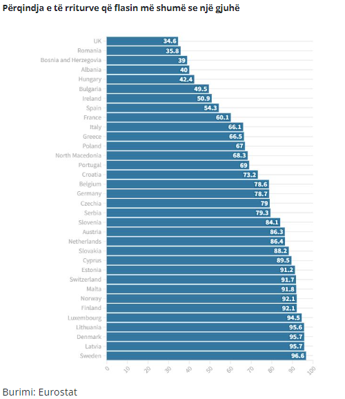 Në renditjen e bërë nga Euronews, Shqipëria renditet në vendin e katërt, me 40% të të rriturve që flasin më shumë se një gjuhë, referuar të dhënave nga Eurostat për vitin 2016.