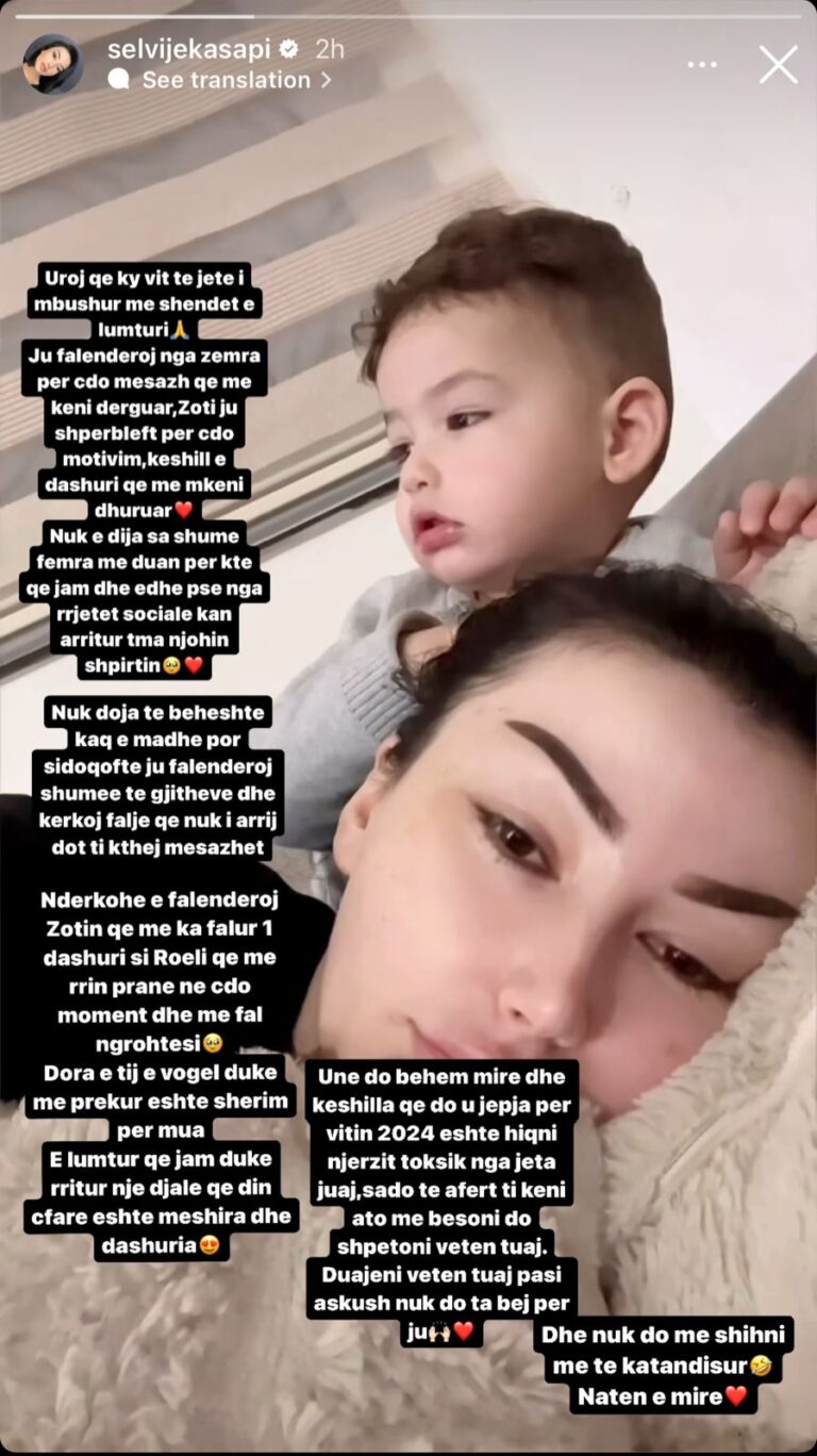 Në një urim prekës për ditën e lindjes së djalit të tyre, Selvija u shpreh edhe për sfidat që ka kaluar, ndërsa sot ajo ka uruar të gjithë ndjekësit e saj të cilët e kanë mbështetur në këtë rrëfim të saj. Postimin në ‘Instagram’ e mbyll me një këshillë për vitin e ri 2024.