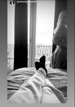 Ne Instagram, një person me emrin James ka postuar një foto i shtrirë, ndërsa para tij duket edhe modelja shqiptare. Nga emri duket se personi në fjalë është i huaj.