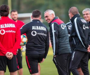 Modelja u fotografua nga paparacët e veshur vetëm me një xhaketë të zezë të lirshme, pa pantallona, çorape dhe shapka ngjyrë bojëqielli.