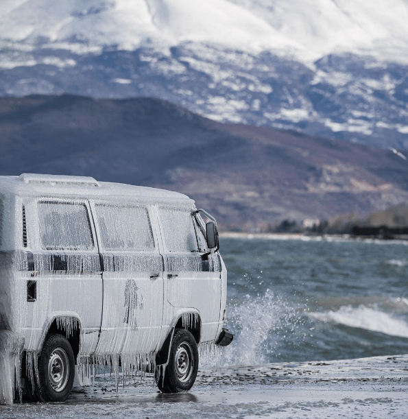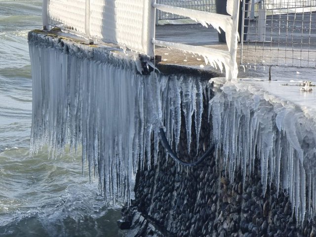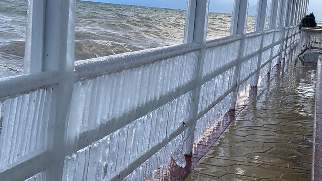 Në këtë qytet temperaturat e ulëta deri në -12 gradë gjatë orëve të natës kanë krijuar pamje interesante të akullit në bregun e liqenit.