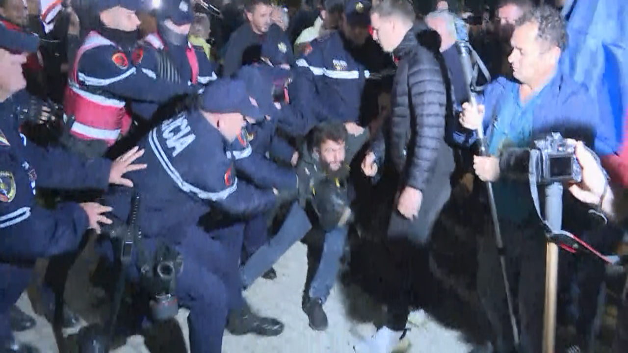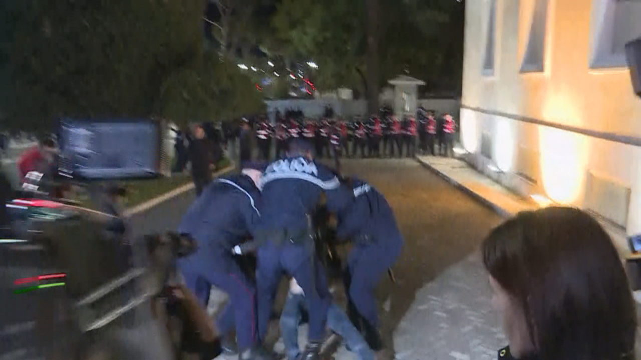 Një person është shoqëruar me forcë nga policia. Ndërkohë që protestuesit kanë ndezur dhe qirinj në shkallët e kryeministrisë. Sipas të dhënave, personi i arrestuar kisht një thikë në dorë dhe po qëllonte dyert e kryeministrisë.
