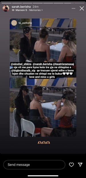 E ta dinin vajzat se pikërisht ajo eksperiencë do të ndryshonte kaq shumë gjëra në jetët e tyre. Këtë moment e ka kujtuar Sarah, e cila ka ndarë një imazh nga një faqe Instagrami, ku në një dedikim të saj ka vendosur foton e tyre natën e parë që u bënë pjesë e reality-show-t. Blogerja ka zgjedhur të vendosë vetëm disa zemra, si mbishkrim të kësaj story.