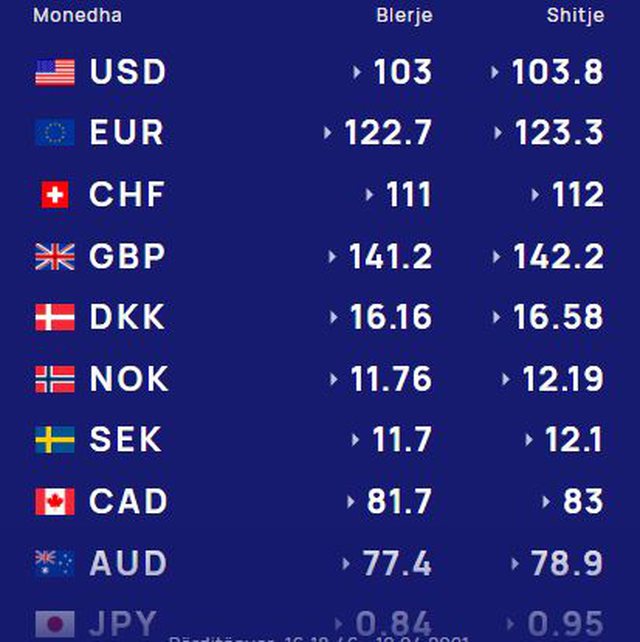 Më poshtë do të gjeni kursin e këmbimit valutor të përditësuar: