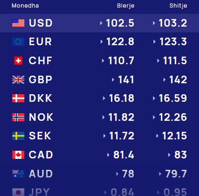 Më poshtë do të gjeni kursin e këmbimit valutor të përditësuar: