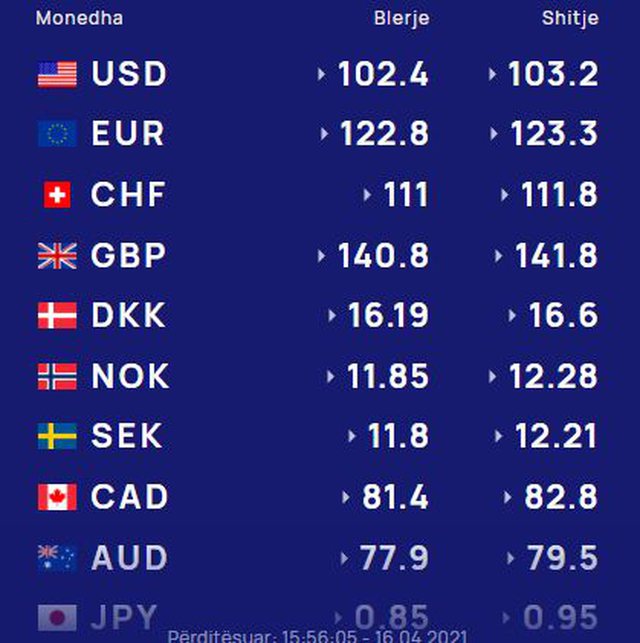 Më poshtë do të gjeni kursin e këmbimit valutor të përditësuar: