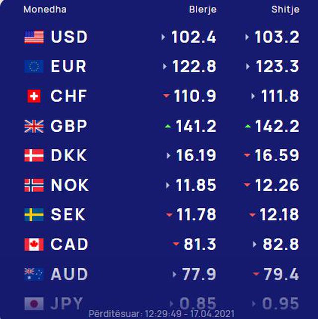 Më poshtë do të gjeni kursin e këmbimit valutor të përditësuar: