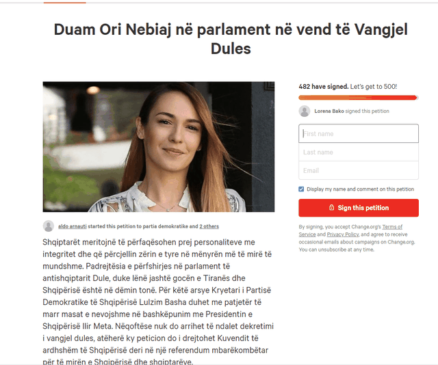 Nëqoftëse nuk do arrihet të ndalet dekretimi i Vangjel Dules, atëherë ky peticion do i drejtohet Kuvendit të ardhshëm të Shqipërisë deri në një referendum mbarëkombëtar për të mirën e Shqipërisë dhe shqiptarëve”, thuhet në peticion.