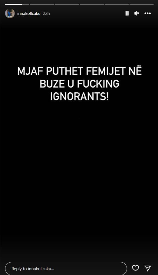 Në një postim në Instastory, Ina ka shkruar e revoltuar: “Mjaft puthët fëmijët në buzë o injorantë të ndryrë”.