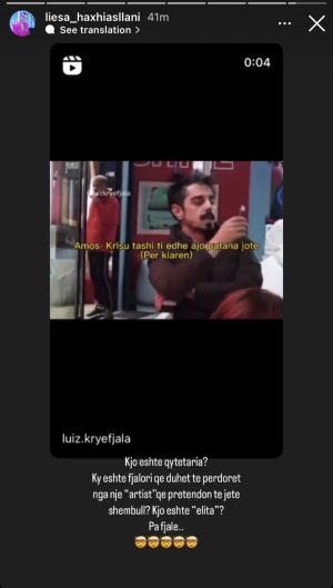 Kjo është qytetaria? Ky është fjalori që duhet të përdoret nga një “artist” që pretendon të jetë shembull? Kio është “elita”? Pa fjalë…”-shkruan Liesa, në Instastory.