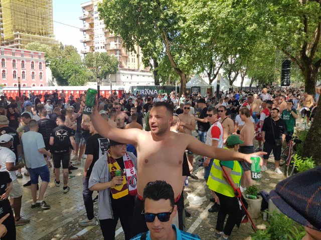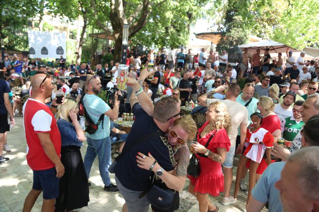 Disa orë para finales së Conference League që do të luhet në Tiranë mes Romës dhe Feyenoord, tifozët kanë filluar festën. Në tempetarurat e larta të Tiranës, tifozat e Feyenoord janë mbledhur në zonën para pedonales, të zhveshur dhe duke pirë birra, me flamurin e skuadrës së tyre, duken mjaft të gëzuar për mbremjen e sotme.