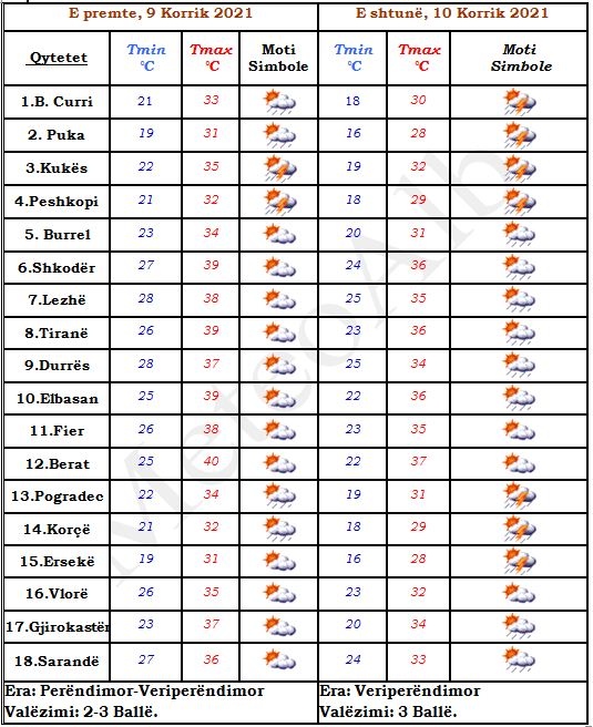 Në fotot e mëposhtme do gjeni parashikimin e motit për qytetet kryesore të vendit, Kosovës dhe botës: