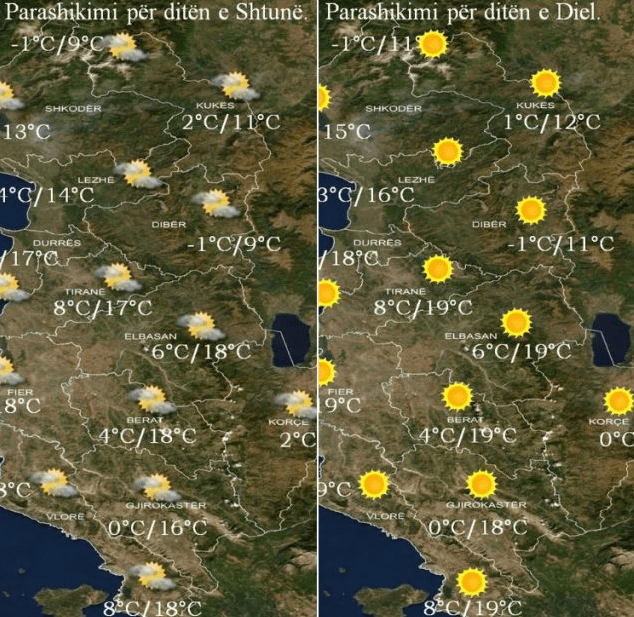 Temperaturat në orët e mëngjesit do të mbeten të freskëta ndërsa në ato të mesditës relativisht të larta për periudhën që ndodhemi për shkak të masave ajrore me origjinë jugore.