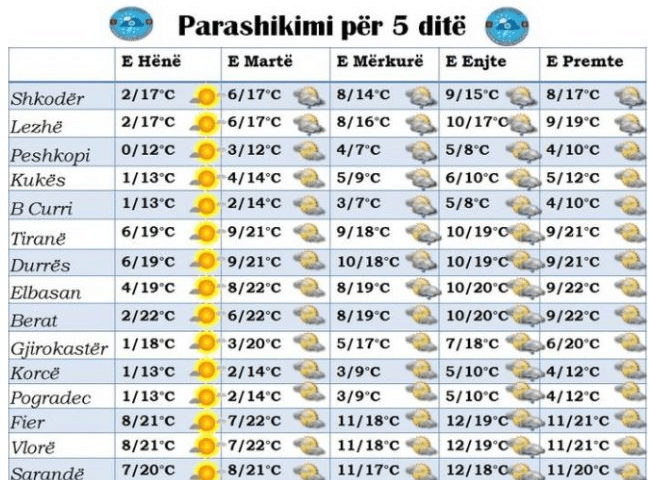 Vendi për javën e ardhshme parashikohet të jetë në ndikimin e motit të ngrohtë, falë erërave jugore.