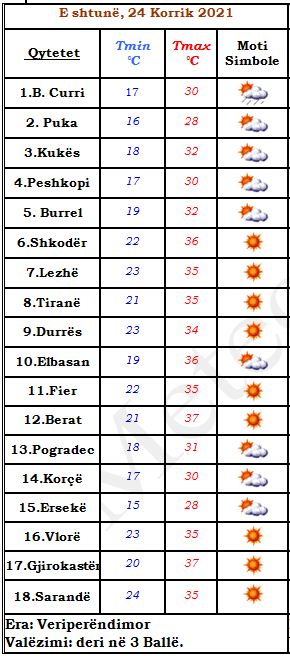 Në fotot e mëposhtme do gjeni parashikimin e motit për qytetet kryesore të vendit, Kosovës dhe botës: