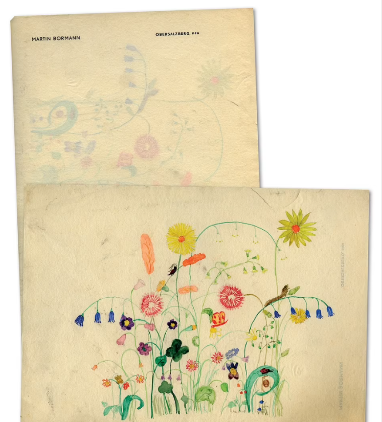 Në kontrast të plotë me këto, megjithatë, është një vizatim prekës me lule dhe insekte shumëngjyrëshe nga vajza e Bormann-it, Eike, e cila gjithashtu u shpëtua.