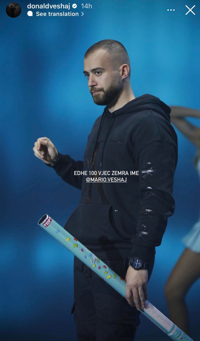 “Edhe 100 vjeç zemra ime, Mario Veshaj”,- shkruan Donaldi në një foto të postuar në ‘InstaStory’.