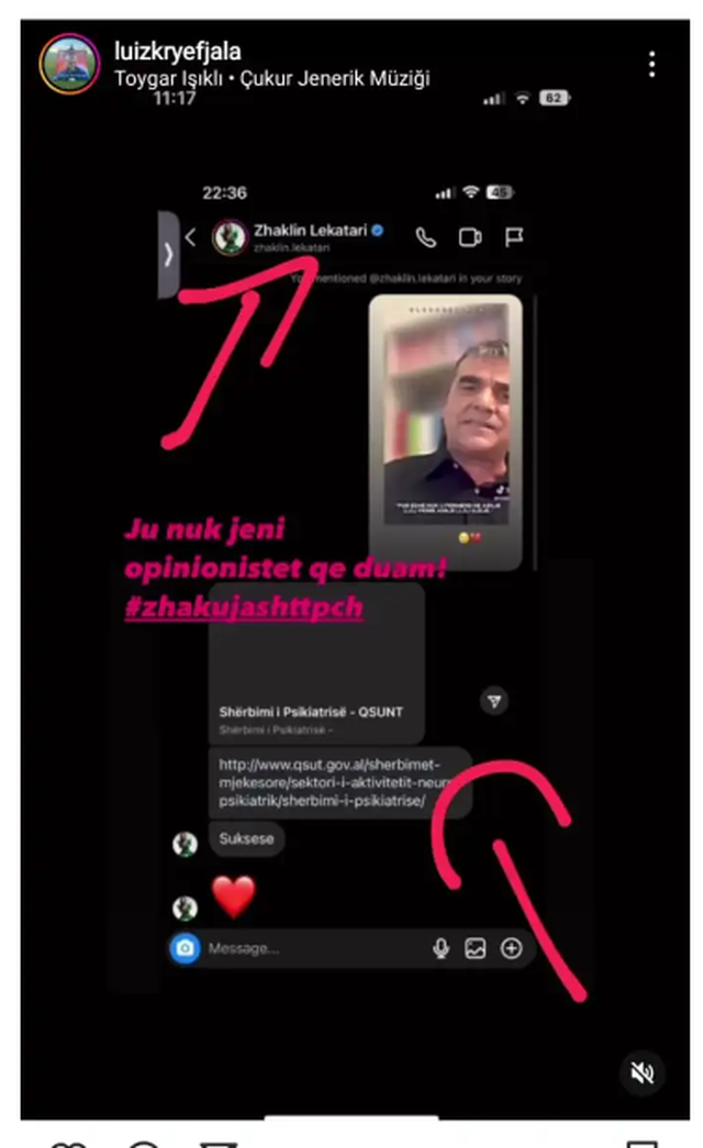 Ajo dërgoi linkun e shërbimit të psikiatrisë, duke ironizuar kështu komentet e babait të Kiarës, një veprim që po komentohet shumë në rrjet ditën e sotme.