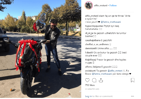 Mirëpo, së fundmi, ai ka bërë një tjetër veprim që vulos raportin me nënën e djalit të tij. Alfio ka publikuar një fotografi të një motori duke shkruar “Bye Bye”. Siç shihet nga fotoja, bëhet fjalë për motorin që i ka dhuruar Fatma disa vite më parë. Asokohe, Alfio shkroi: “S’kam faj unë që të thërras ‘drita e syve t’mi’ … Të dua”!