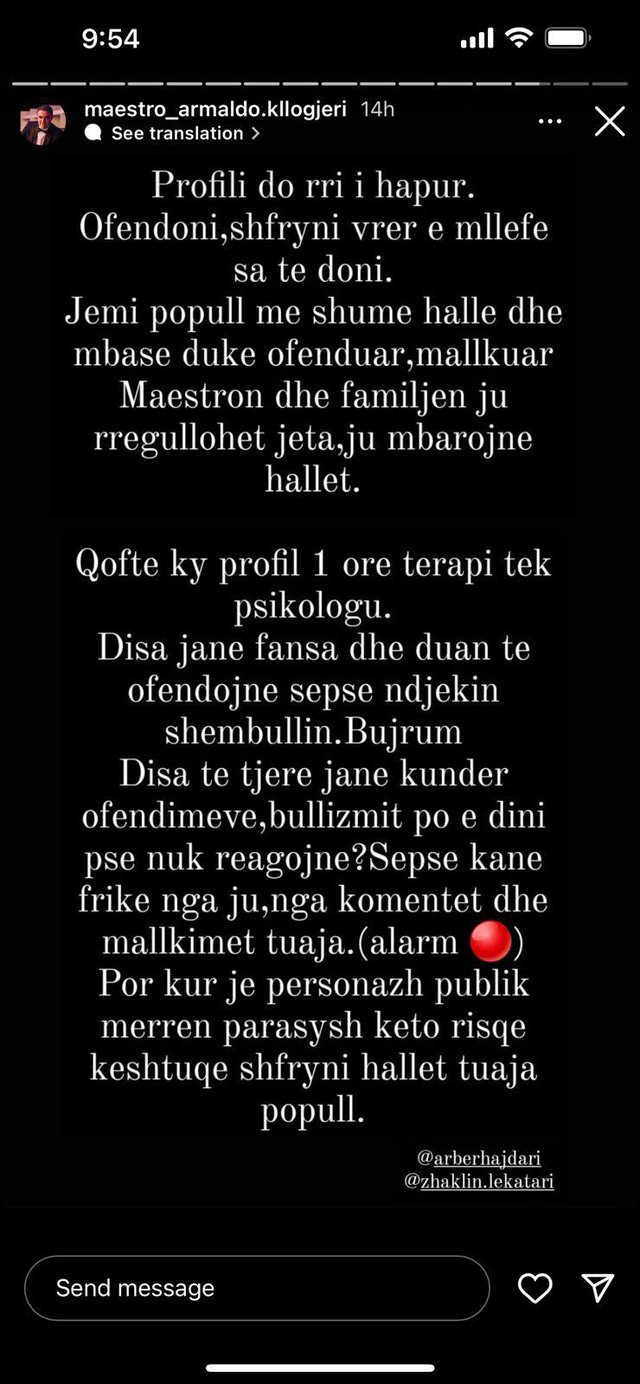 Sic dihet, aktualisht instagrami i tij menaxhohet nga njerëzit e tij të afërt, një ndër to edhe bashkëshortja. Duke parë të gjithë zhurmën në rrjet dhe komentet negative, në profilin e maestros është bërë një reagim në lidhje me këtë situatë.