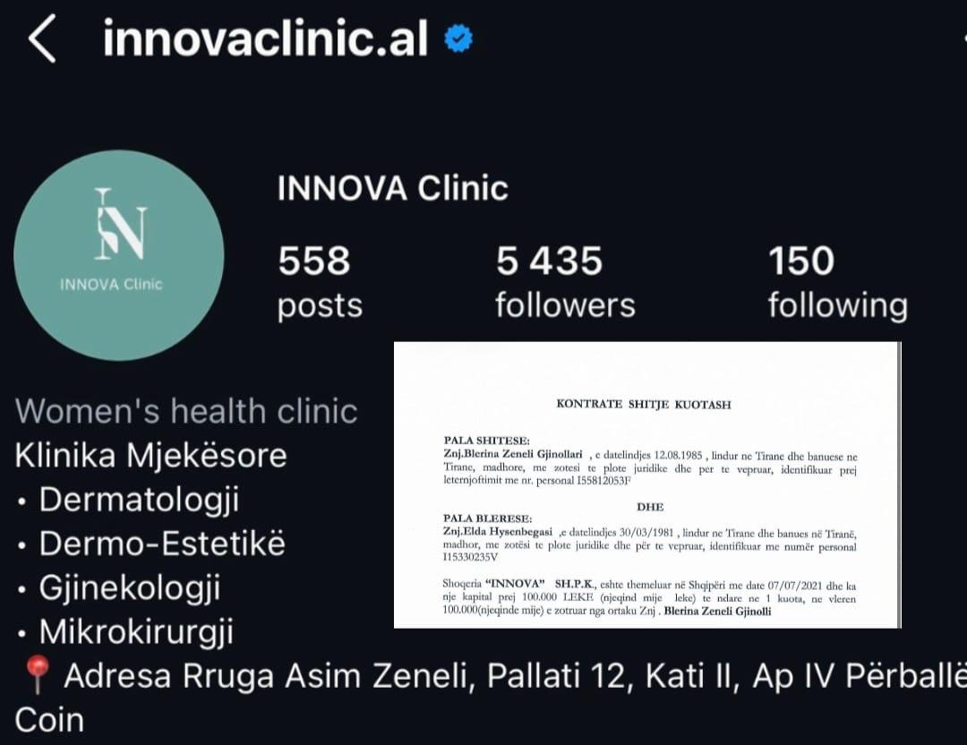 Por më interesantja në lëzivjet financiare të znj Elda Hysenbegasi është “Innova clinic”. Kjo klinikë me një investim mbi 1.5 milionë euro, e vendosur përballë COIN, është themeluar në vitin 2021 me një kapital vetëm 100.000 lek. Burimi i 1.5 milionë eurove investim është i paqartë. Në vitin 2023 ndodh një transaksion i çuditshëm. “Pronarja” që hapi një klinikë që vlente mbi 1.5 milionë euro vendos tja shesë znj Elda Hysenbegasi për vetëm 100.000 lek. Aq sa ishte kapitali fillestar.