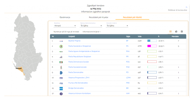 Partia Socialiste ka kryesuar me shumicën e mandateve për Këshillat Bashkiakë në Himarë ku kanë marrë me 2778 vota (36.06%) me 9 këshilltarë, e ndjekur nga pas nga koalicioni “Bashkë Fitojmë” me 2328 vota (30.22%), 7 këshilltarë.