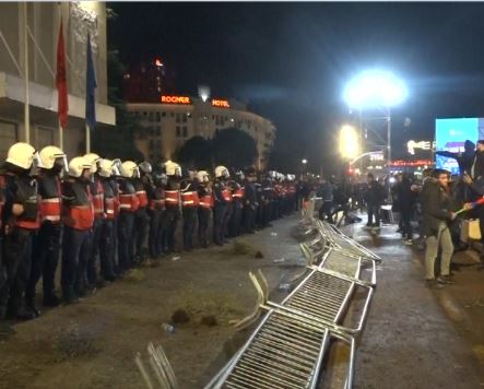 Protestuesit kanë rrëzuar barrierat metalike para Kryeministrisë dhe kanë tentuar t’i afrohen kordonit të policisë, gjatë protestës që po zhvillohet nga opozita. Protesta e PD përballë kryeministrisë është përshkallëzuar pak minuta pasi ish-kryeministri Sali Berisha mbylli fjalën e tij, të cilën e mbajti përmes një video-konference.