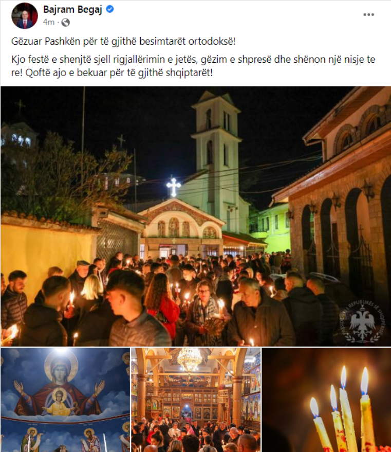 “Gëzuar Pashkën për të gjithë besimtarët ortodoksë!
