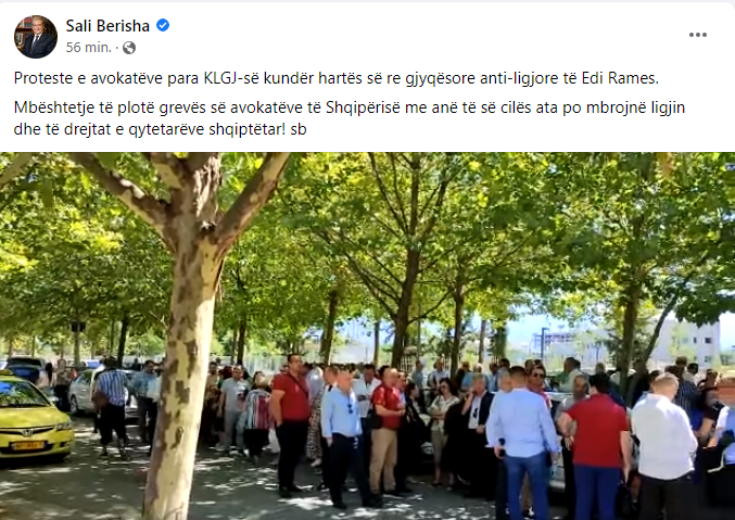 Kreu i PD, Sali Berisha ka reaguar në lidhje me protestën e avokatëve të cilët refuzojnë hartën e re gjyqësore.