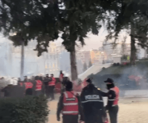 Protestuesit janë përplasur me policinë, teksa tentuan të thyejnë kordonin e efektivëve. Disa prej tyre hodhën fishekzjarre dhe tymuese drejt Parlamentit.