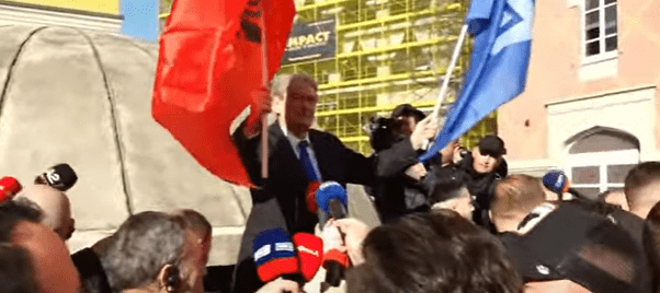 Protesta zhvendoset te Parlamenti/ Berisha mban flamurin shqiptar dhe atë të PD
