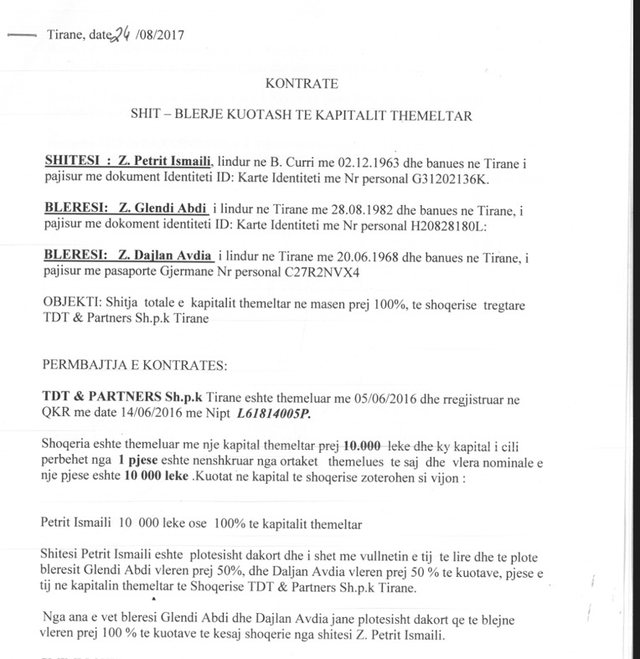 VoxNews ka analizuar edhe historikun e kompanisë, ku rezulton se Abdi dhe Avdia e blenë kompaninë në vitin 2017. Shitësi ishte Petrit Ismaili, ndërkohë që Glendi Abdi dhe Dajlan Avdia u bënë pronar të rinj.