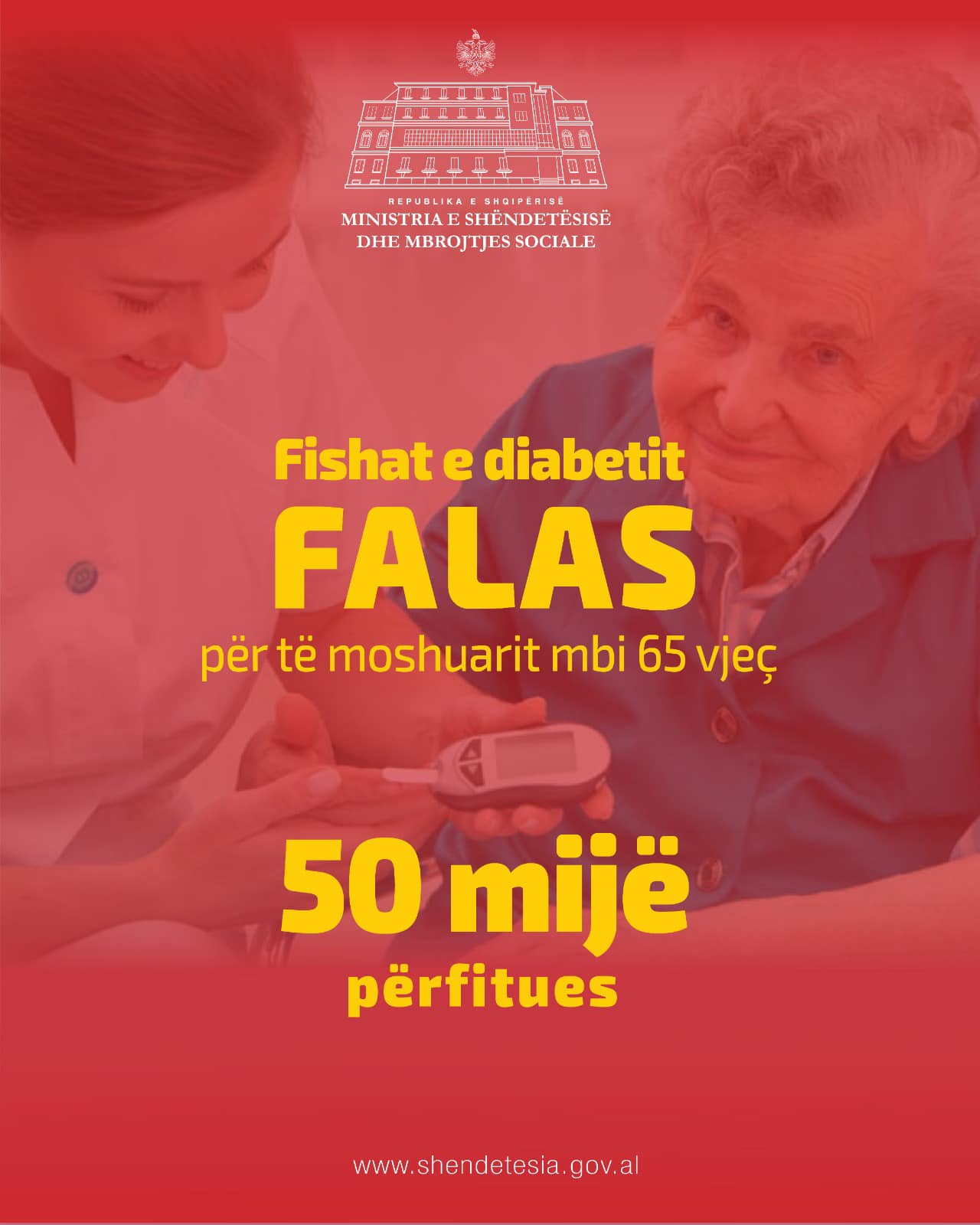 Kreu i qeverisë shkroi se fishat e diabetit do të jenë falas për të moshuarit mbi moshën 65-vjeç. Nga ky vendim pritet të përfitojnë 50 mijë të moshuar.