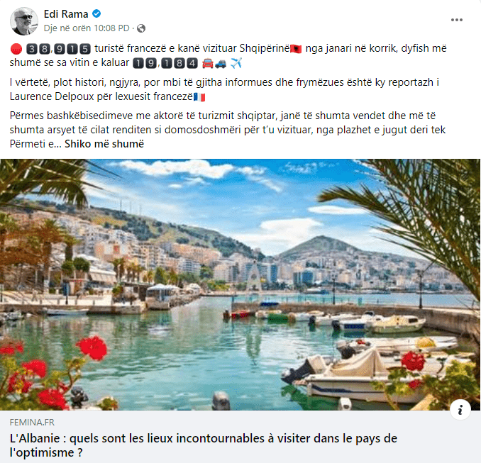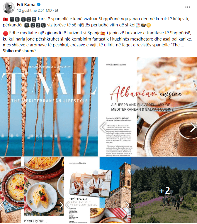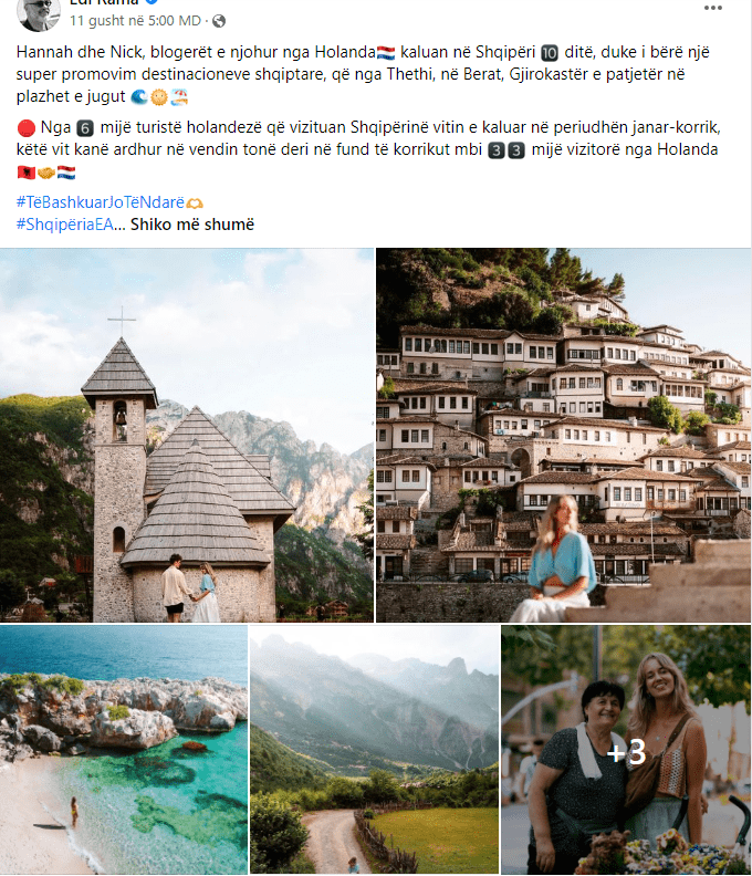 Duhet theksuar se kryeministri Rama gjatë një jave, i ka kushtuar në hapësirën e tij virtuale, 8 postime numrit të turistëve që kanë zgjedhur të vizitojnë Shqipërinë.