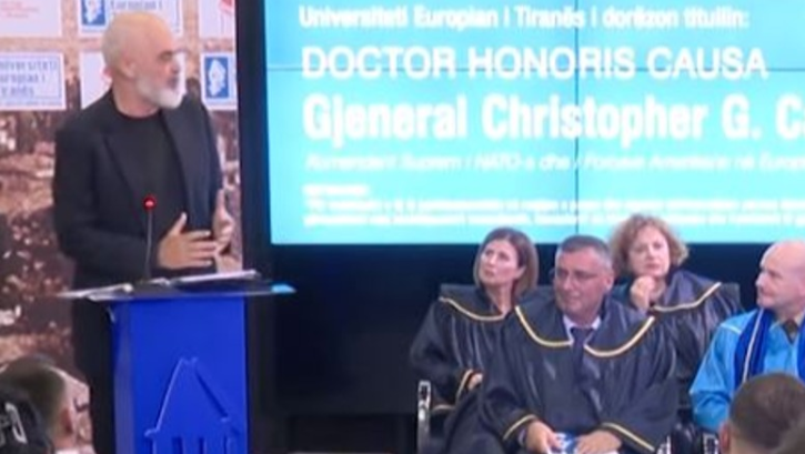 Rama e bëri këtë njoftim gjatë ceremonisë në të cilën General Christopher G. Cavoli, Komandant Suprem i NATO-s dhe i Forcave Amerikane në Europë, u nderua me titullin “Doctor Honoris Causa” nga Universiteti Europian i Tiranës.