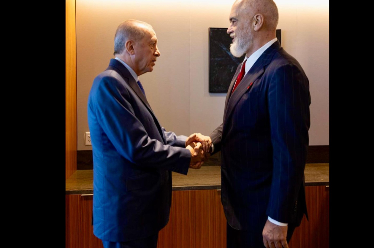 Kryeministri Edi Rama me anë të një postimi në rrjetet sociale ka publikuar fotografi me presidentin turk, Rexhep Tajip Erdogan në New York.