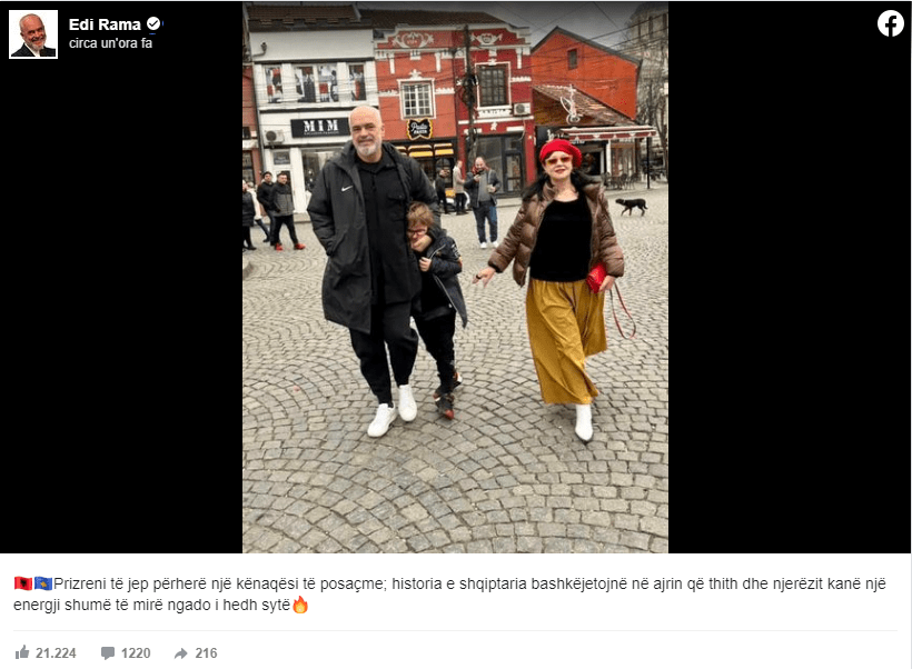 Me anë të një postimi Rama shprehet se njerëzit kanë një energji shumë të mirë ngado i hedh sytë.