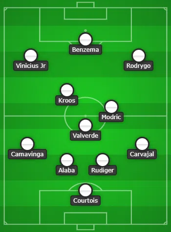 Karim Benzema, Vinicius Junior dhe Rodrygo do të vazhdojnë të udhëheqin sulmin përpara, ndërsa Thibaut Courtois operon në portë.