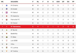 Tabela e renditjes ne Kategorinë e Parë: