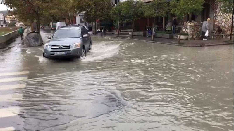 Siç shihet edhe në fotot e mëposhtme, rrugët e qytetit janë përmbytur, duke shkaktuar vështirësi në qarkullimin e automjeteve.