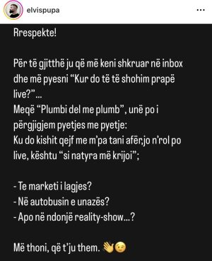 Për të gjithë ju që më keni shkruar në inbox dhe më pyesni “Kur do të të shohim prapë live?”