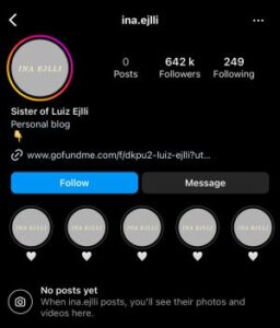 Aktualisht llogaria e tij numëron 642 mijë ndjekës, ndërsa këto ditë papritur ndryshoi emër nga Luiz Ejlli në atë të motrës së tij, Ina Ejlli.