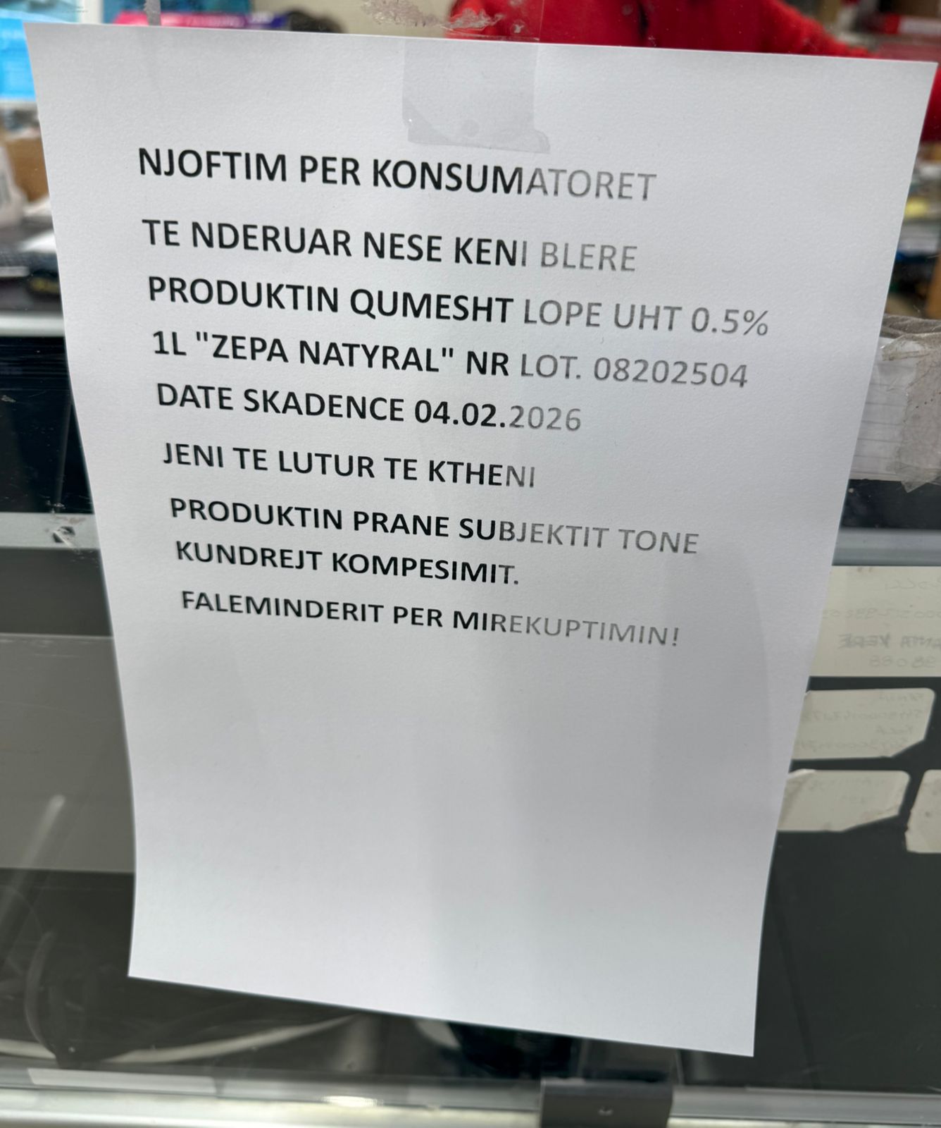 Ky njoftim është tejet i rëndë dhe nuk mund të kalojë thjesht me disa copa letrash të ngjitura në banaqet e marketeve.