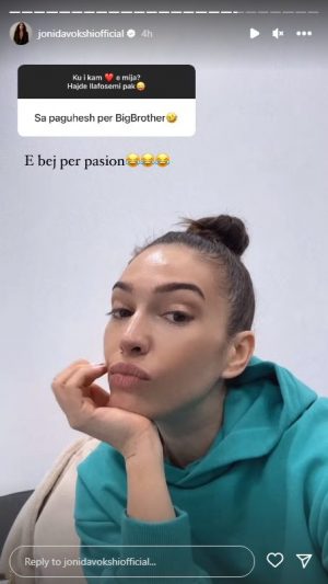 Një tjetër pyetje që iu drejtua Jonida Vokshit në këtë “intervistë” virtuale ishte në lidhje me rrogën e saj si moderatore e “BBV.” Ndjekësi i shkruan Jonidës: “Sa paguhesh për “Big Brother”?