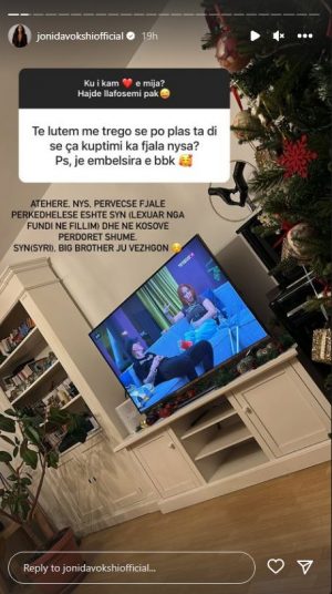 “Big Brother Vip Kosova” ka nisur tashmë prej një jave, nën moderimin e Alaudin Hamitit dhe Jonida Vokshit. Mes shumë angazhimeve, kjo e fundit ka gjetur pak kohë për ndjekësit e saj në rrjetet sociale, të cilëve iu ka dhënë mundësinë t’i drejtojnë pyetje.