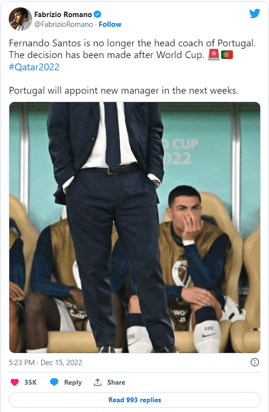 Portugalia tashmë është në kërkim të një trajneri të ri dhe emrat e parë kanë filluar të qarkullojnë nëpër korridoret e zyrave të përfaqësueses. Një hipotezë e mundshme është edhe Jose Mourinho, me këtë të fundit që ka një kontratë me Romën deri në vitin 2024, por ideja e drejtimit të Portugalisë mund të bëjë që të ndërrojë mendje.