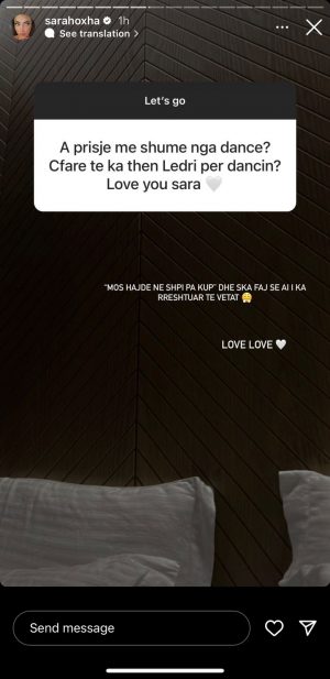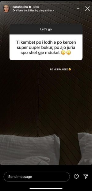 Gjatë një bisede virtuale në ‘Instagram’, një ndjekës i shkruan Sarës: “Ti këmbët po i lodh dhe po kërcen super bukur, po ajo juria s’po sheh gjë më duket.” Ndërsa blogerja i është përgjigjur duke shkruar: “Po hë pra hë”, shoqëruar me një emoji.